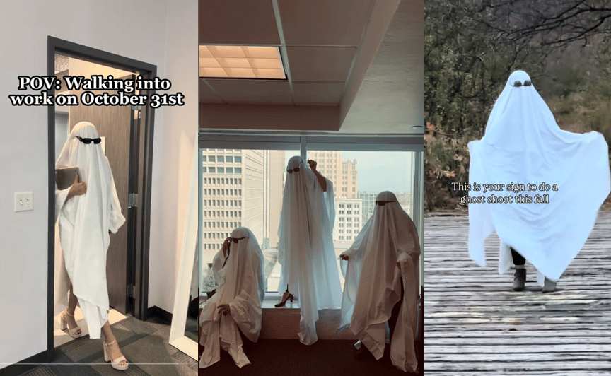 El trend del mes volvió con fuerza: sábanas blancas, gafas oscuras y el audio “Can’t be the only one who hears you / Tears falling down at the party.”